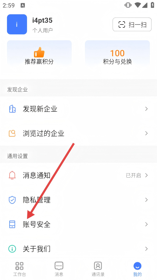 2、在個人頁面,點(diǎn)擊【賬號安全】,進(jìn)入賬號安全設(shè)置界面。