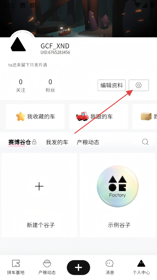2、在個人頁面點(diǎn)擊【設(shè)置】圖標(biāo),進(jìn)入設(shè)置頁面。