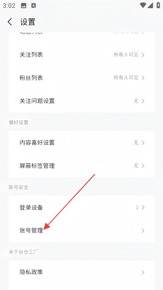3、在設(shè)置頁面點(diǎn)擊【賬號管理】,進(jìn)入賬號管理頁面。