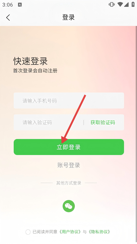 4、在登錄頁面,輸入手機(jī)號碼、驗(yàn)證碼,點(diǎn)擊【立即登錄】,即可繼續(xù)購買流程。