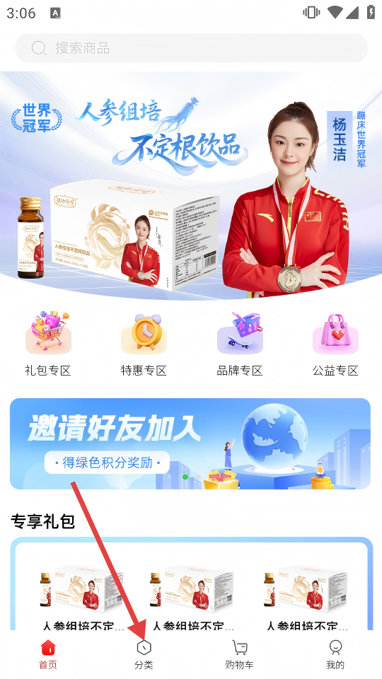 1、打開購物APP,點(diǎn)擊底部【分類】,進(jìn)入商品分類頁面。