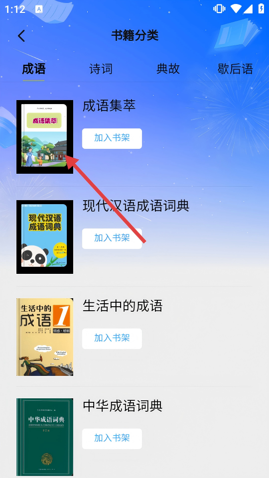3、在書(shū)籍分類(lèi)的“成語(yǔ)”類(lèi)別下,選擇《成語(yǔ)集萃》,進(jìn)入書(shū)籍詳情頁(yè)。