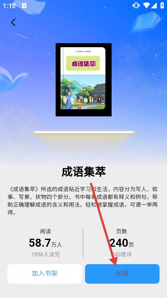 4、在《成語(yǔ)集萃》詳情頁(yè),點(diǎn)擊【閱讀】,即可開(kāi)始閱讀。