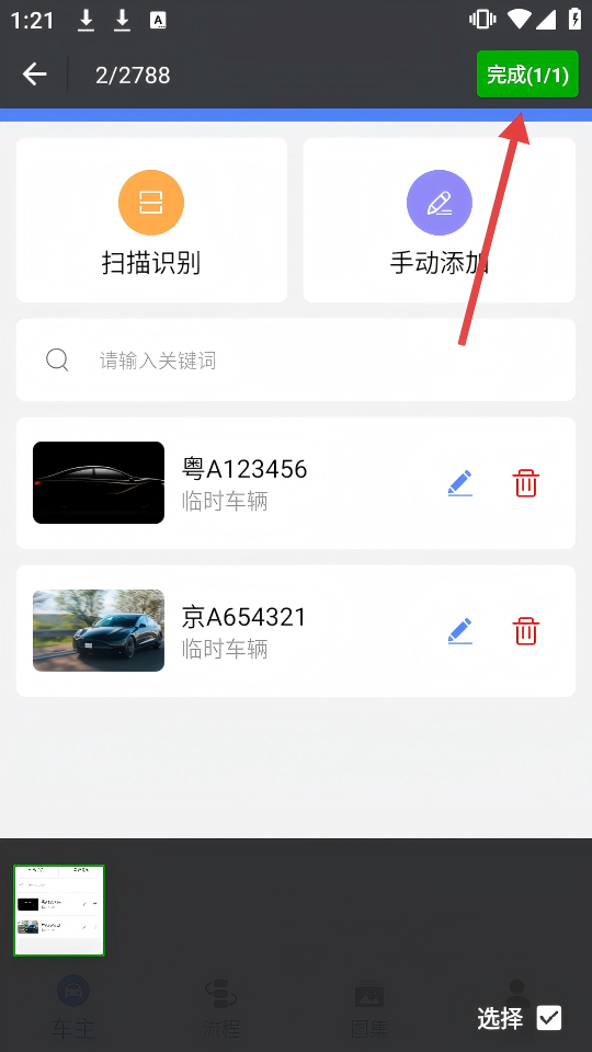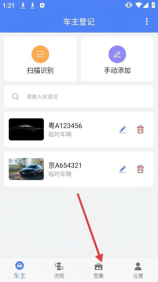 1、進(jìn)入【車(chē)主登記】界面后,若要添加水印,點(diǎn)擊底部【圖集】選項(xiàng),進(jìn)入水印圖片相關(guān)頁(yè)面。