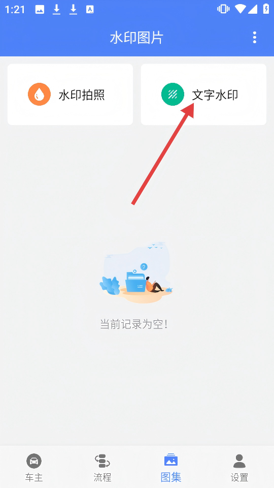 2、在【圖集】頁(yè)面,能看到【水印拍照】和【文字水印】選項(xiàng),點(diǎn)擊【文字水印】進(jìn)入后續(xù)操作。