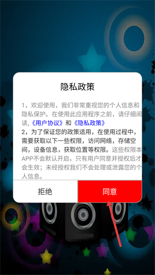 1、打開應用后,在彈出的“隱私政策”彈窗中,點擊“同意”按鈕,完成隱私政策相關內容的確認。