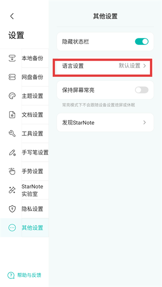 3、在其他設(shè)置界面,點(diǎn)擊【語(yǔ)言設(shè)置】選項(xiàng),進(jìn)入應(yīng)用的語(yǔ)言配置專屬頁(yè)面。