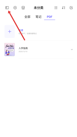 2、在StarNote主界面,點(diǎn)擊左上角的文件夾圖標(biāo),展開應(yīng)用的分類管理側(cè)邊欄。