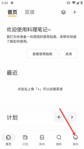 1、在料理筆記首頁,點擊底部導航欄的【我的】選項,進入個人功能頁面,可查看賬號信息與各類功能入口。