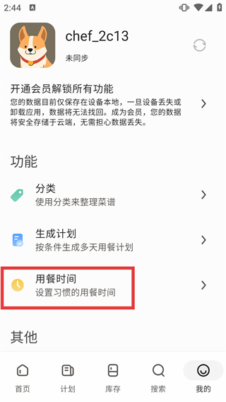 2、在“我的”頁面中,找到并點擊【用餐時間】選項,進入用餐時間的設置頁面,該功能用于配置習慣的用餐時段。