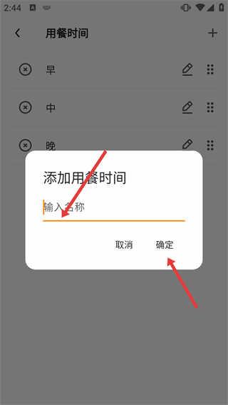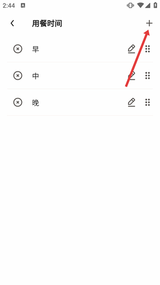 3、進入用餐時間頁面后,點擊右上角的“+”按鈕,彈出“添加用餐時間”的操作彈窗。