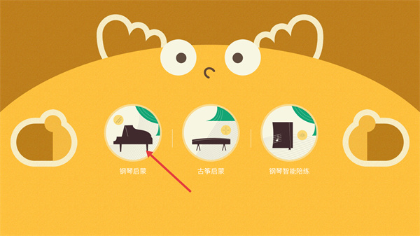 1、進入界面后,可選擇【鋼琴啟蒙】、【古箏啟蒙】、【鋼琴智能陪練】功能,優(yōu)先點擊【鋼琴啟蒙】開啟對應(yīng)的學(xué)習(xí)模塊。