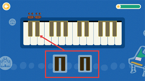 4、在鋼琴實操界面中,參照鍵盤區(qū)域的按鍵提示,點擊下方對應(yīng)按鍵模塊,完成鋼琴操作的實操練習(xí)任務(wù)。