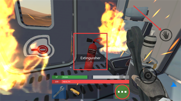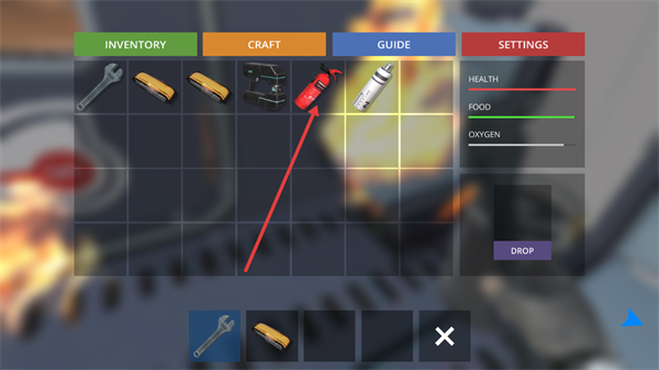 3、打開物品欄(INVENTORY),選中紅色滅火器。