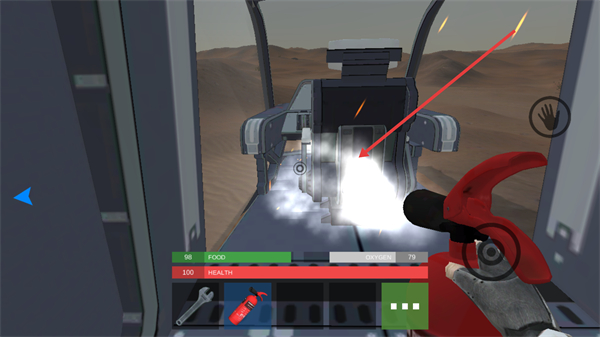 4、使用選中的滅火器,對準(zhǔn)艙室內(nèi)的火焰噴射,撲滅火災(zāi)。