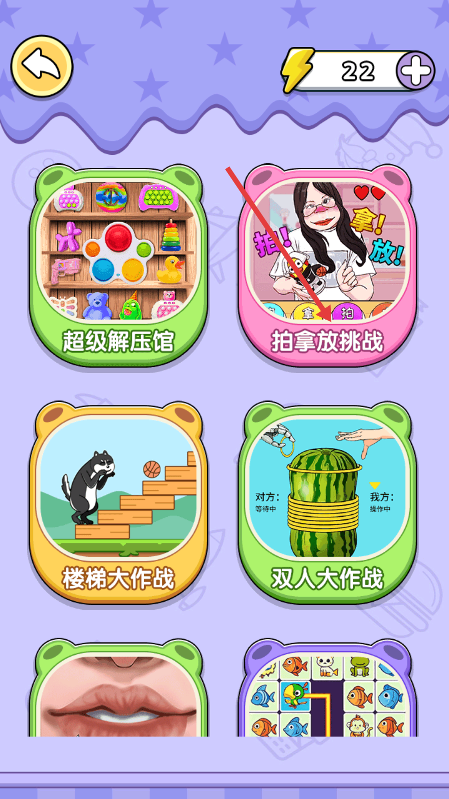 2、選擇【拍拿放挑戰(zhàn)】模式,開啟游戲。