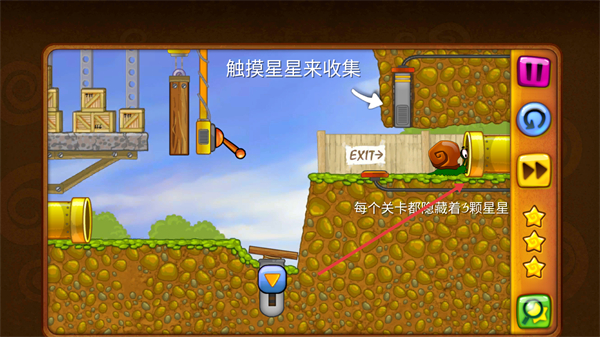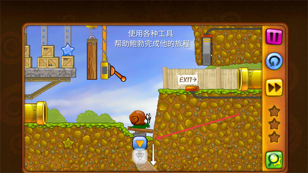 4、引導(dǎo)蝸牛鮑勃進(jìn)入標(biāo)有“EXIT→”的黃色管道,完成當(dāng)前關(guān)卡的旅程。
