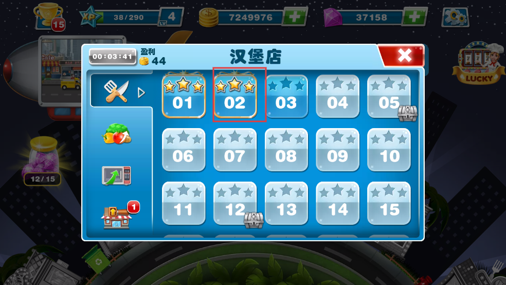 2、升級完進入關卡選擇界面,點擊并選擇進入關卡2,準備開始烹飪挑戰(zhàn)。