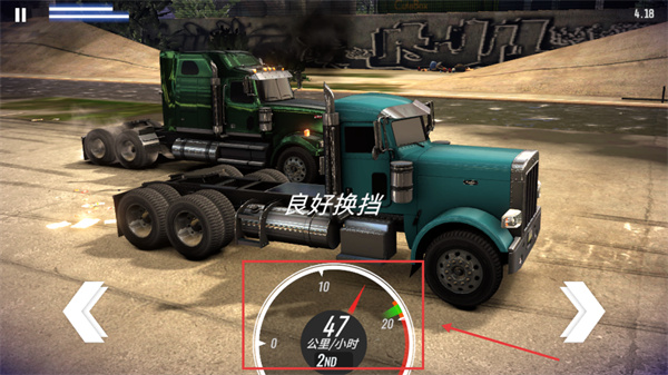 3、駕駛時參考【公里/小時】速度表,在提示【良好換擋】時完成操作,可提升競速效率。