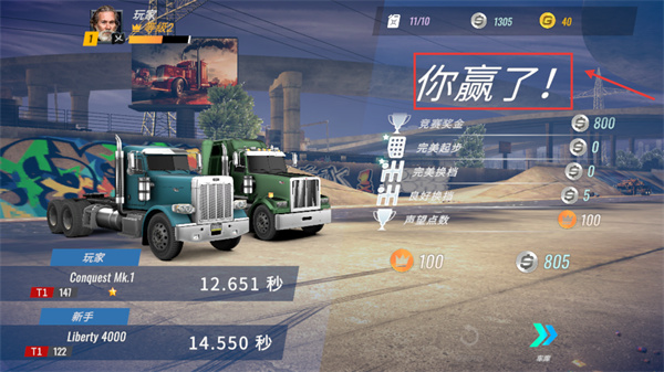 4、賽事獲勝后將獲得【競賽獎金】與【聲望點數(shù)】,積累獎勵可解鎖更高等級的卡車與賽事。